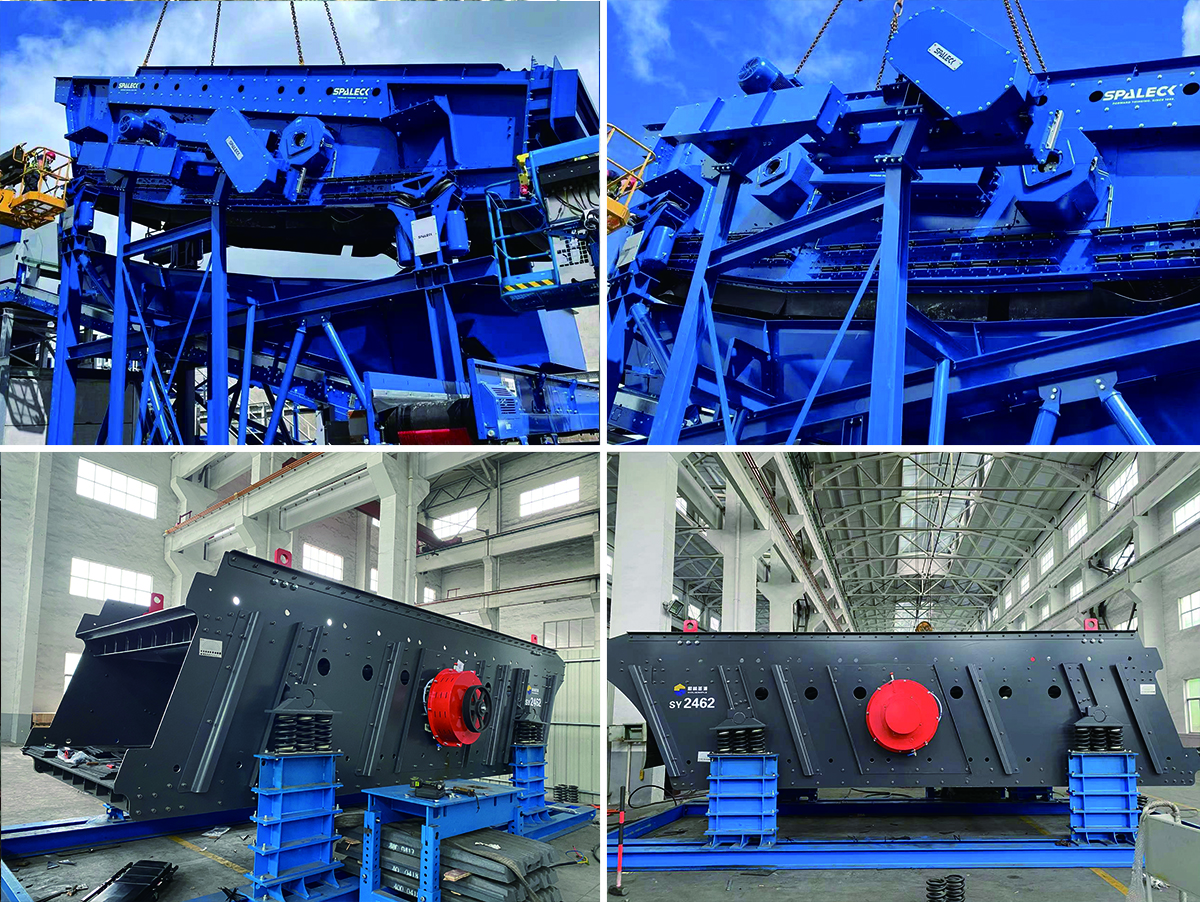 YK型偏心塊式圓振動(dòng)篩是電動(dòng)機(jī)經(jīng)輪胎聯(lián)軸器(撓性片),使激振器里面的偏心塊產(chǎn)生高速旋轉(zhuǎn)。運(yùn)轉(zhuǎn)的偏心塊產(chǎn)生很大的離心力,激發(fā)篩箱產(chǎn)生一定振幅的圓運(yùn)動(dòng),篩上物料在傾斜的篩面上受到篩箱傳給的沖量而產(chǎn)生連續(xù)的拋擲運(yùn)動(dòng),物料與篩面相遇的過程中使小于篩孔的顆粒透篩,從而實(shí)現(xiàn)分級(jí)。